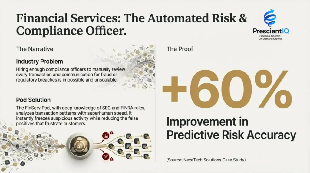 Whether you are focused on wealth management, asset management, private equity, lending, insurance, or fintech, AI can help you improve client growth, operational efficiency, and risk visibility at scale.